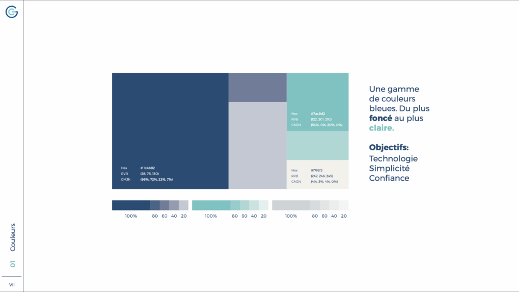 À partir de là, je traduis vos idées en un univers graphique sur mesure : palette de couleurs, typographies, iconographie, styles d’images et règles d’utilisation.